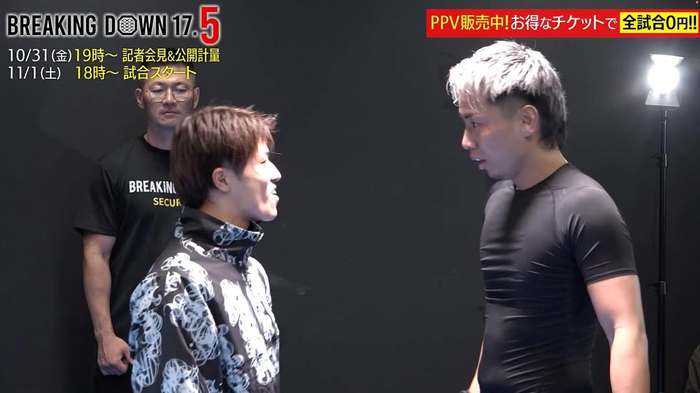 また、9月の『BreakingDown 17』で野田蒼に敗れてBreakingDownフライ級王座を逃したJTTの竹見浩史郎が再起戦。SNSで喧嘩を売ってきた龍志と因縁の決着戦を行うことも決定した。龍志は『BreakingDown 13』から出場し、これまで2勝2敗。『BreakingDown 16.5』では朝倉未来の統括マネージャーである伊師美和さんとのデート権を賭けて修羅斗と戦い、勝利している。
