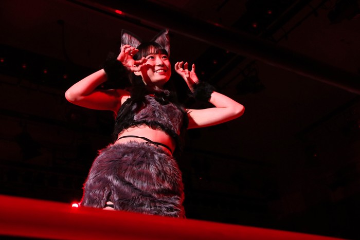 メンバーはオオカミ、メイド、ウサギ、ポリスなどのコスプレで登場し、恒例のオープニングパフォーマンスで最後はチャイナドレスの空手有段者でもある瀬戸なみが、かめはめ波で全員を倒すという演出で会場を和ませた。