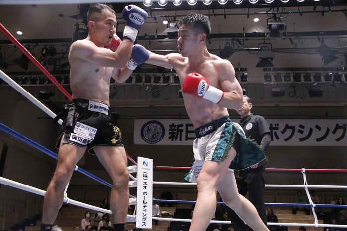 1R、岩橋が左ボディを打てば、岡田は左フック。互いに被弾しながらも打ち合い、ミドルを蹴り合う。終盤、岩橋が左ミドルと左ボディの連続攻撃を見せた。