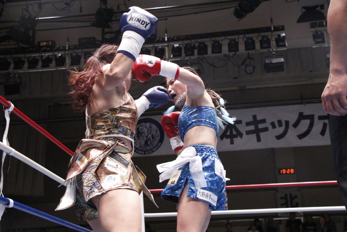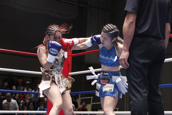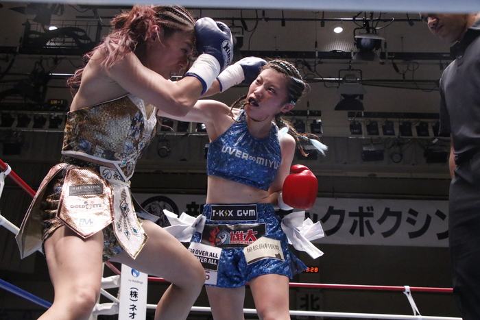 3Rも両者打ち合い、組んでも休まずヒザを蹴り合う。UvermiyUが左右フックの連続ヒットで優勢に立ったかと思えばAIKOも前へ出て左右フックとヒザで逆襲。そしてまたUvermiyUが前へ出る。