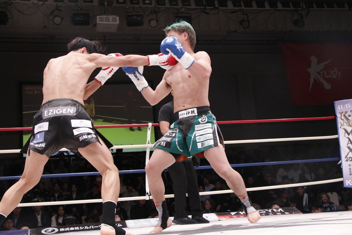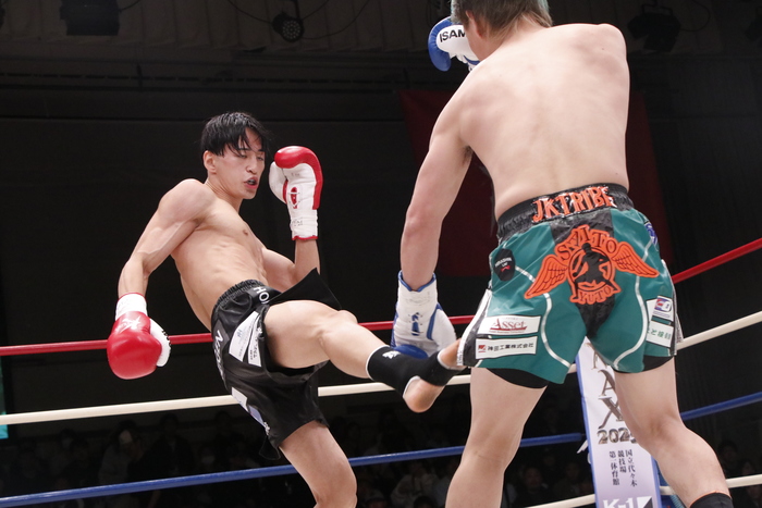 Krushでは珍しく判定決着が続く中、第6試合のKrushスーパー・フェザー級3分3R延長1Rで斎藤祐斗(JK TRIBE)と対戦した松山勇汰(ALONZA ABLAZE)がビッグインパクトを残した。