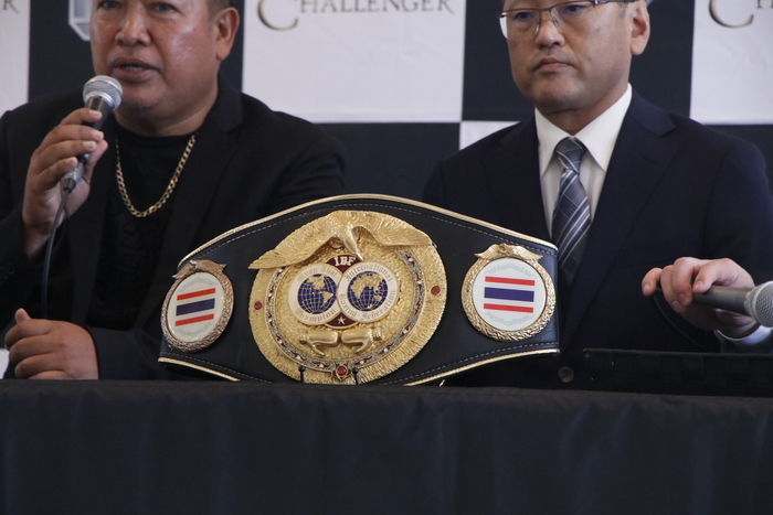 会見にはタイの名門ゲッソンリットジムのベン会長も同席し、坂上理事長は「彼の紹介でIBFタイ責任者のジミー氏とつながりを持ち、IBFを日本ではNJKFでまとめてくれというお話をいただきました。日本トーナメントをやって日本王者を決め、強い選手が世界を目指すという風にやっていきたい」とする。