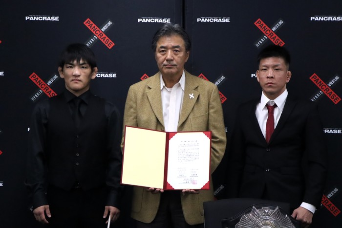 2025年11月9日(日)、東京・ニューピアホールにて昼夜で開催される『PANCRASE 358』『PANCRASE 359』(U-NEXT配信)の出場選手記者会見が24日、都内にて行われ、前半は昼の部『358』のメインでフライ級王座戦に臨む、濱田巧(THE BLACKBELT JAPAN)と大塚智貴(CAVE)の調印式および会見が行われた。