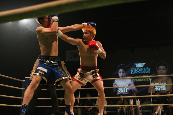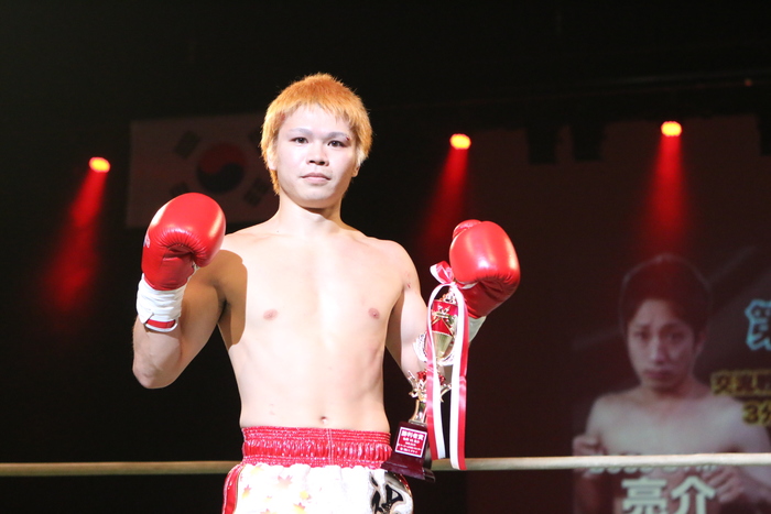 第8試合では、KNOCK OUTでも頭角を現し、毎月のように試合に出場している広島の祐輝が、拳之会興行に久々の参戦。亮介を相手に左でダウンを奪い、ワンツーで倒して1RTKO勝利。得意の速攻で勝利を飾った。