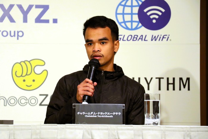 一方、チャラームダムは「日本のキックボクシングのことはもちろん知っていますし、日本のキックボクシングのルールについても自分なりに研究してきました。自分にとっては明日が海外で試合をするのが初めてになるんですけれども、いい経験になりますので、実際に勝ってこの勝利をタイに持ち帰りたいと思っています」と必勝宣言。