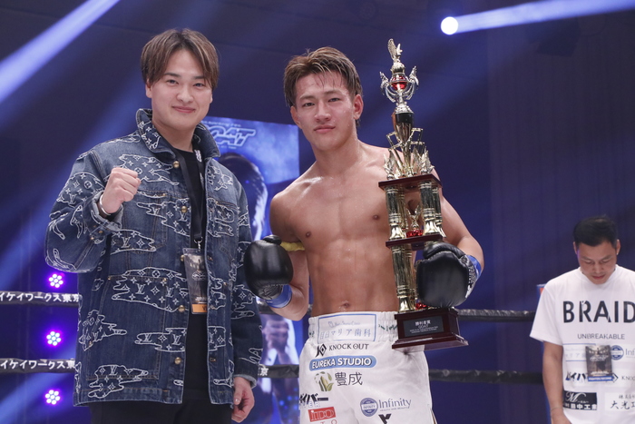 判定は3-0で龍聖が勝利。マイクを持った龍聖は「僕は魔裟斗さんみたいに絶対に日本人に負けなくて、負けた相手にリベンジするわけでなく、武尊さんみたいに勝ち続けているわけじゃないんですけれど、今日の試合ではまだまだまカリスマとはいかないですが、必ず魔裟斗、武尊、次は龍聖になります。またGOATでお会いましょう」と語った。