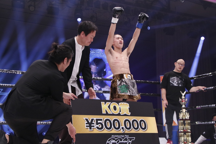 再起戦となった10月11日のSBではワン・アミンと対戦し、ラウンド終了直前に左ストレートをもらったアミンが、ゴング後にコーナーへ戻ろうとしたところで倒れる“時間差KO”で話題を呼んだ。