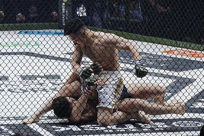 24年10月、Angel's FC暫定ライト級/ICKFフェザー級王者キム・ウィジョンとの初の国際戦では左右パウンドで1RTKO勝利。25年3月、地元四国でRIZIN初参戦。裏メインと囁かれた日本拳法の最高傑作vs黒帯柔術家対決で、1R54秒、横山武司から右フックでダウンを奪いパウンドアウト。MMA戦績を5戦全勝、全初回KOに更新した。