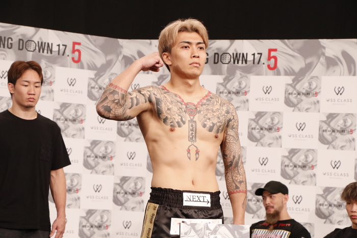 第9試合のバンタム級キックルールで対戦する、竹見浩史郎は60.0kg、龍志は59.6kgでそれぞれ計量をパス。