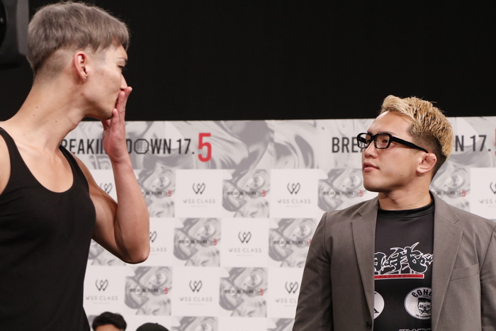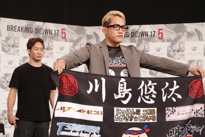 対する“Mr.BreakingDown”こと川島悠汰は「明日で20戦目になりました。その20戦目をメインでやらせてくださること、ありがとうございます。今までにないタイプの選手で日頃から愛を伝えてくださっていて、自分も気持ちが惹かれてきました。BreakingDownのメインらしい、濃厚な試合を楽しんでもらいたい。勝つのは俺です」と、記念すべき20戦目で勝つと宣言。