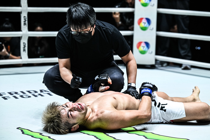 ONEの映像ではカーンが映され、松田のうめき声だけが聞こえるなか、「判定はされるものの、ファールをした選手に勝利の権限は無し」と放送席。画面が大きく引きの画になるなか、ノーコンテストがアナウンスされた。