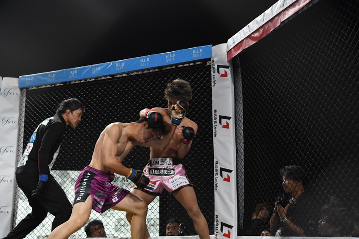 3R、杉村の左フックに組み付いていくフィッシュマンだがブレイク。フィッシュマンが組み付こうとするところに左ヒザを合わせる杉村。それでも組んでくるフィッシュマンに杉村がフロントチョークで引き込む。これはブレイク。立ち上がったフィッシュマンは右ストレートで前へ出るが、杉村がテイクダウンして試合を終えた。