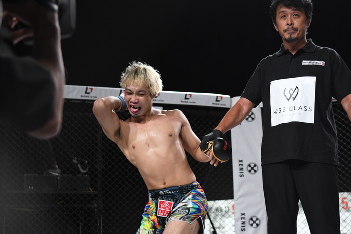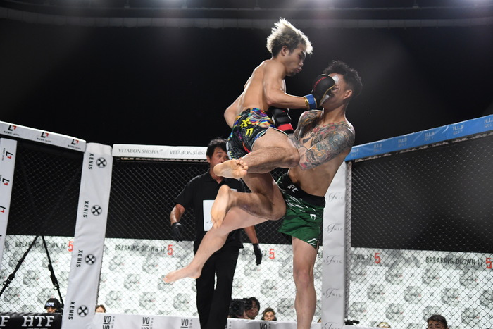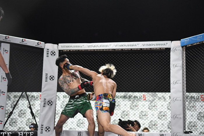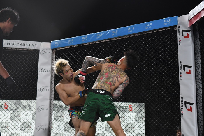 ボクは左ミドル、左フック。しゅーは左右ストレートの連打で前へ出るが、ボクはノーガードで余裕を見せた。