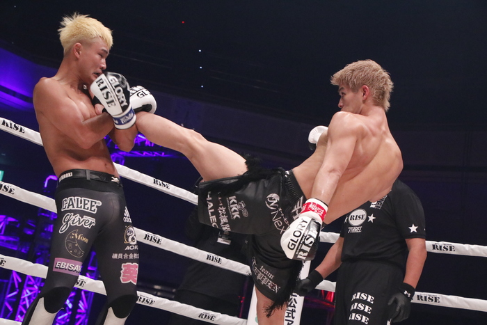1R、白鳥は前蹴りと左ミドル、笠原はローを蹴っていく。中盤から笠原がステップを踏んで左右にスイッチしつつ飛び込んでのパンチを繰り出し始める。打ち合いで笠原の右フックが白鳥を捉えた。