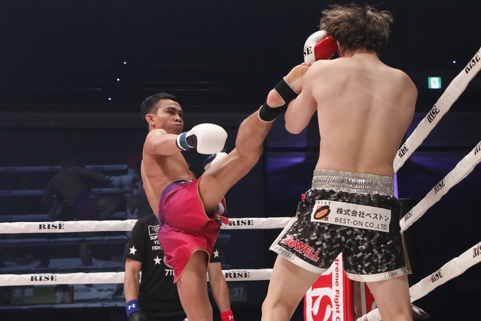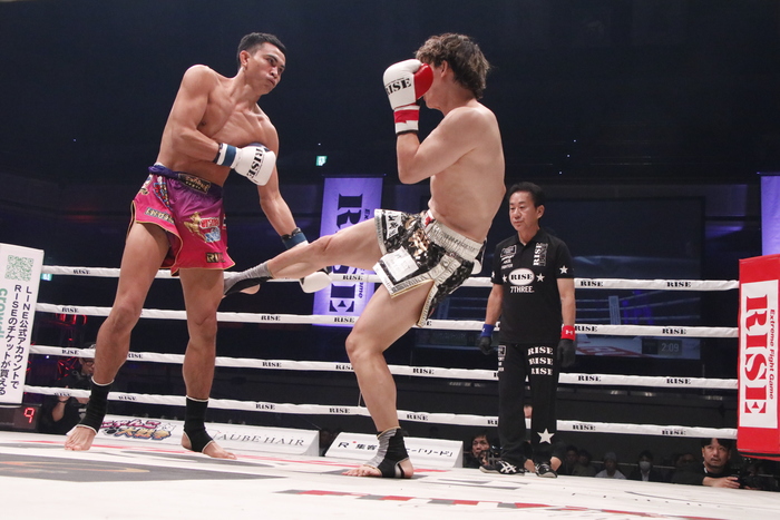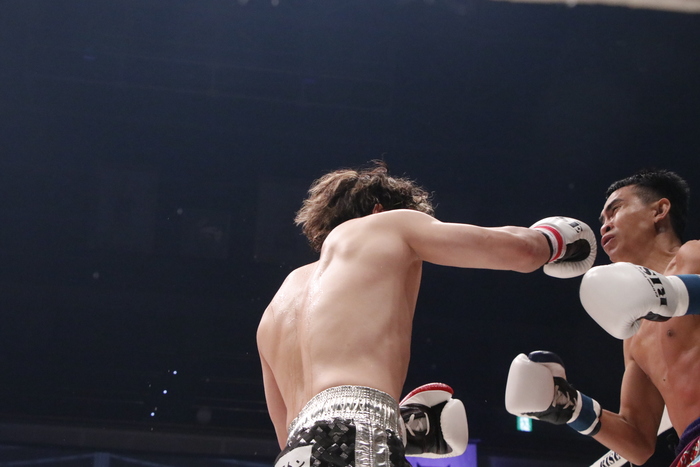1R、志朗は徹底的に右ローを蹴っていき、ジャブを突く。ペットサンコムは左ミドル。互いに探り合いのラウンドとなったが、志朗がパンチをまとめる場面もあった。
