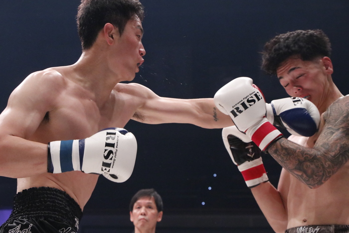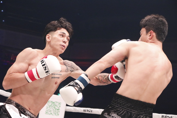 3R、メイソンはアツくなると大振りになる癖と、勘でよけるため伸びるサンヘの左ストレートを被弾する。前に出るサンヘのパンチに危険な場面もありながら、メイソンはジャブを突き左ストレートを当てた。