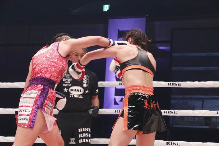 3R、吉田のジャブ、右ストレートに美斬帝もパンチで打ち合うが、的確性に差がある。しっかりパンチを当てていく吉田はカウンターもとり、ボディも打つ。さらに右ローも蹴る吉田。