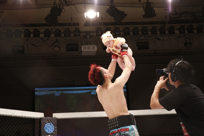 で、一緒に練習頑張ってやってくれたみんな、ありがとう。この場を借りて『ありがとう』と言いますが、もう言いません(笑)。あとはもう1回……。あっ、あと、僕今日誕生日なんで見かけたら『おめでとう』って言ってくれれば嬉しいです。まだもうちょっと試合頑張って重ねてくんで、皆さん応援、よろしくお願いします。ありがとうございました」と、35歳の誕生日にケージの中で語った。