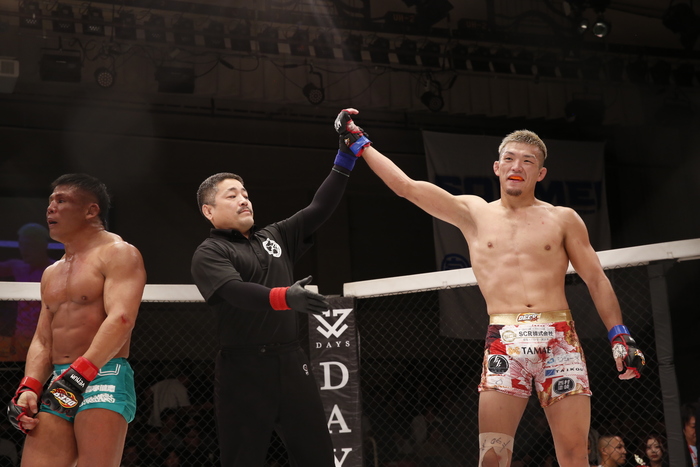 判定3-0(30-27×3)で、北岡のギロチンを防ぎ、有効打を当てた山田が勝利した。