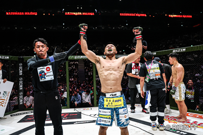 テイクダウンからはしっかり削って最後に極めた摩嶋は「今日は、初めて子供2人、見に来てくれているので、強いパパを見せられてよかったです。会社の後輩も来ています、仲間も。いまは全国でも応援されていますし、前回は不甲斐ない試合をしてしまいましたが、ちょっと強くなった試合を見せることが出来ました。12月は(ジム代表の)毛利さんも(TORAOで宇野薫戦)試合をするので注目してください」と語った(※試合後インタビュー全文)。