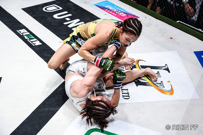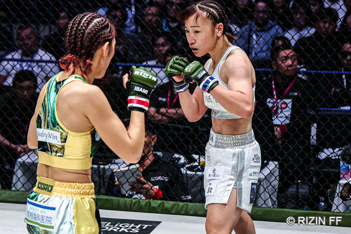 RIZINスーパーアトム級(49.0kg)タイトルマッチで、大島沙緒里(リバーサルジム新宿 Me,We)の挑戦を判定3-0で退けて2度目の防衛に成功した伊澤星花(Roys GYM/JAPAN TOP TEAM)が試合後インタビューに答えた。試合後には、大晦日でRENA(シーザージム)の挑戦を受けての3度目の防衛戦も正式決定している。