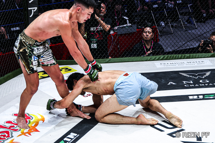 「そうですね。自分は寝技が得意だから、打撃から逃げて寝技に行くっていうイメージが嫌で。ストライカーの方でもグラップラーの方でも一緒だと思うんですけど、こっちができないからこっちの勝負はしないみたいな考えが、ペーペーの僕が言うのもあれなんですけど、僕にはハマらないなって思ってて。どっちもガンガン攻撃できればどっちもいけるっていう、どっちも相手が怖がってくれたらどっちもいけると思ってるので。絶対組みじゃなきゃパトリック選手に勝てないとも思ってなかったし、打撃もどんどん出せばその分寝技もより入りやすくなると元々思ってたんで、それで多分うまく組みに行けたかなとも思います」