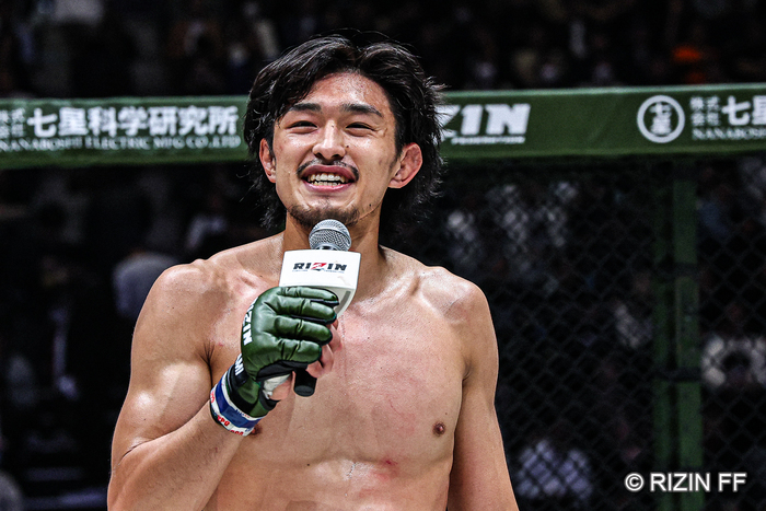 「なんとなくですけど、凄く嬉しくて、試合終わってから。っていうのは、前回大介さんに負けて悔しかったし、父親の名前を使って出てる分、それこそ勝てば官軍、負ければ賊軍じゃないですけど、勝てば誰も文句言わないと思うんですけど、負けたら本当にバカ息子みたいになっちゃうじゃないですか。そういうのもあったんで、今回は本当にパトリック選手が強いのもあるし、試合前も言いましたけど、凄いストライカーと僕はやったことがないんで、そういう怖さもありながら、試合前、今からきついことするの嫌だなってずっと思ってたんで、本当に勝ててよかったな、みたいなことを言おうとしたんですけど、みんなの前で言っても話長いだろうし、かといってもうちょっと何か言った方がいいかなあも思いながら諦めました(笑)」