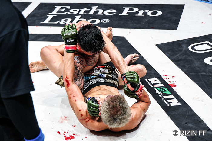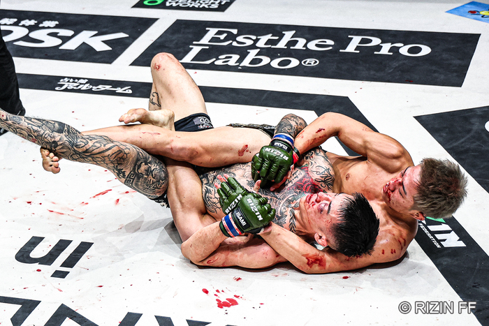 少し歩いては、「ええ? マジかよ」とつぶやく萩原に、石井が「血出てるから拭いた方がいい。バックチョークも取られる感じなかったもんね」。萩原は「全然、なかったスね。ツイスターもスペースあったんで。全然、ディフェンスできたのに……動いとったよ、まだ。全然動けたのに。マジかよ」と悔しさをにじませた。