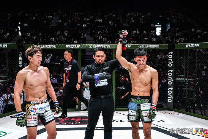 「ぶっちゃけ1R目のニアフィニッシュと、打撃もそんなにいいのを別にバーンてもらったわけじゃないし、3つのラウンドをトータルで見たら勝ってるんじゃないのかなとは思ったんですけど、判定になってしまった以上はもう人に勝負を決めてもらうってことなんで、もう負ける覚悟もしてましたし、あの時は“もう委ねよう。どっちかな”って、あんまりいい気分じゃなかったですね。本当はバーッと極めて、ケージの上に登ってワーッ! ってやりたかったんですけど、それができなかったんで、次はそれを目指して頑張ります」