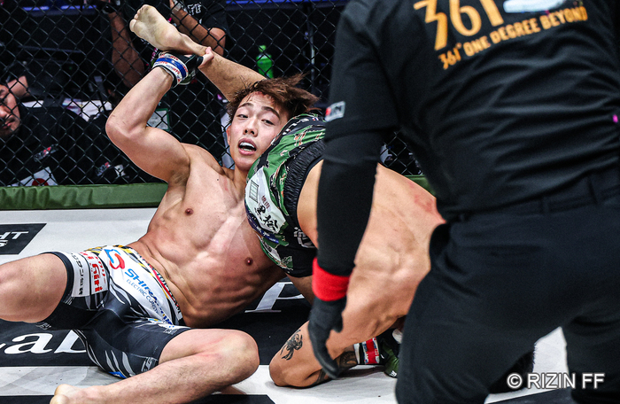 「1回結構伸ばされたんで。“あ、やばいな”とは思いました。でも耐えられて“あ、耐えれたんだ”って。リアクションしてる暇がなかったので、グラップリングの攻防に全集中して戦ったって感じですね」
