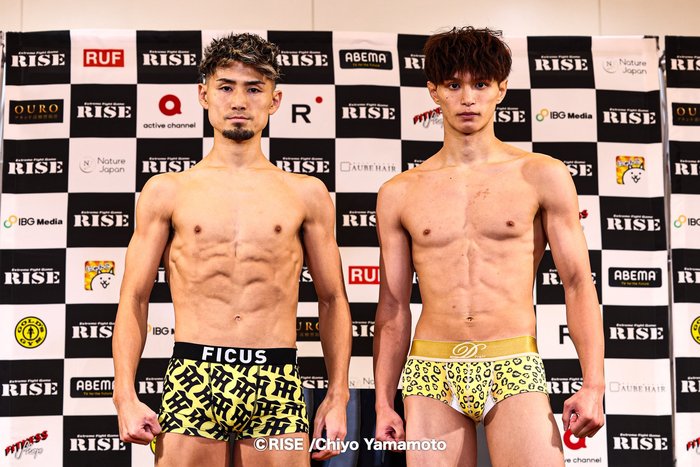鈴木は「RISE初参戦ですけどメインより盛り上がる試合を必ずして、RISEファンの皆さんに『鈴木宙樹』の名前を覚えてもらえる様に頑張るので応援よろしくお願いします」と挨拶。迎え撃つ山口は「勝ちが欲しすぎるのでホンマに勝ちにいきます」と、とにかく勝ちたいとコメント。