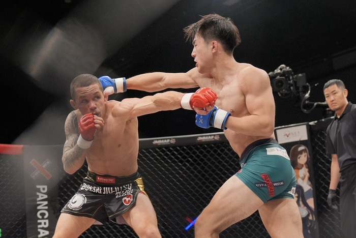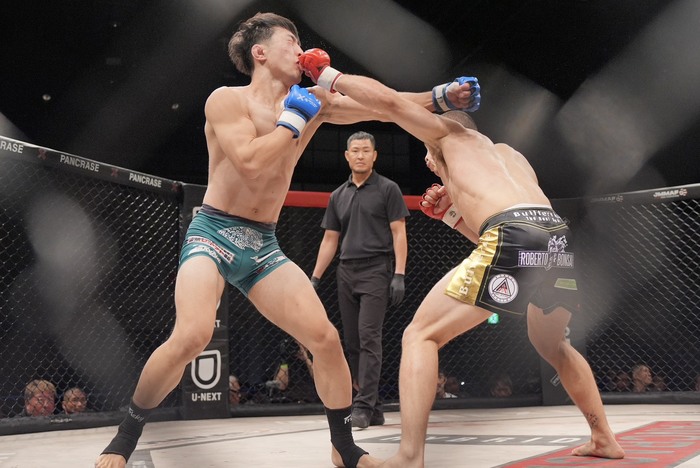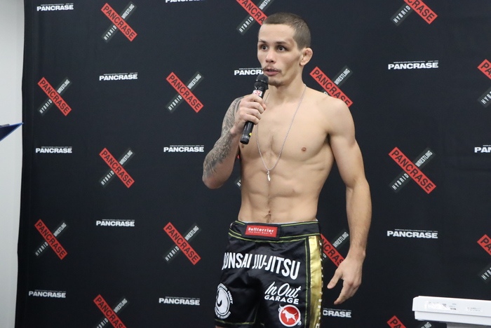 (会見で)PANCRASEに参戦するのは1年ぶりになるんですけど、1年前とは全く違う自分を今回見せられるんじゃないかなと、すごく自分でも楽しみにしています。もともと8月にBreakthrough Combatで試合が決まってたんですけど流れちゃって、試合がなくなったところへPANCRASEさんからリベイロ選手とっていうお話をいただいたんで、“強い奴とやれるなら、ぜひお願いします”ということで今回決まりました。試合当日は思い切り楽しんで、リベイロ選手と熱い戦いを繰り広げたいと思います。