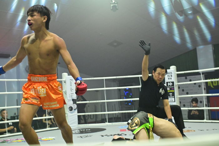 1R、サウスポーの希羅がロープを背負うと右ボディストレートからいきなり左フックを見舞うラスティ。さらに追撃してくるラスティに希羅は組み付く。同じく右ボディストレートからの左フックでラスティがダウンを奪う。組み付き、打ち合おうとする希羅を左右フック連打で2度目のダウンを奪うラスティ。組もうとする希羅に最後は左フックを叩き込み、希羅は前に倒れ込んだ。
