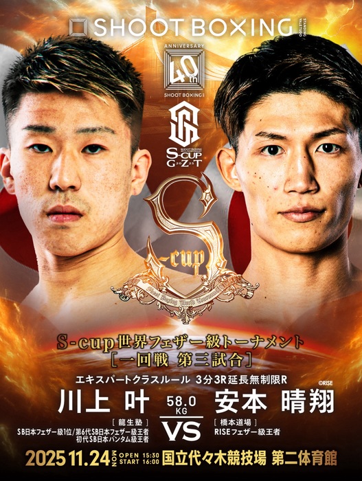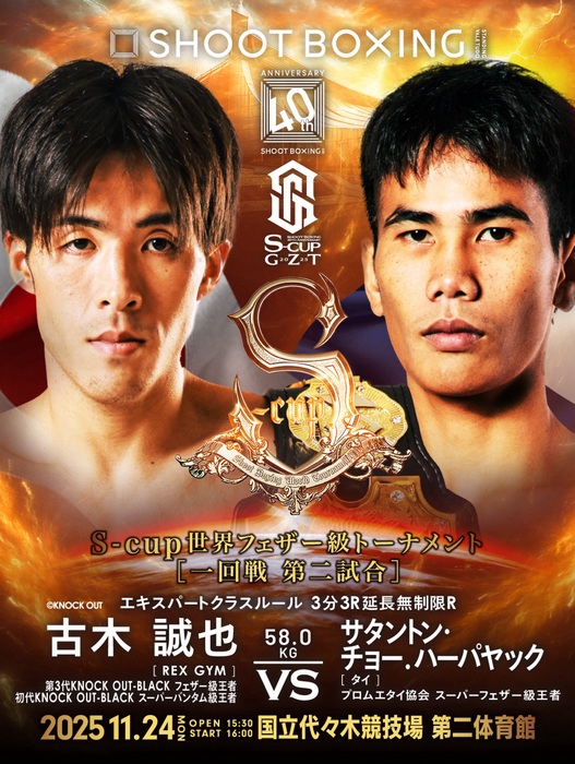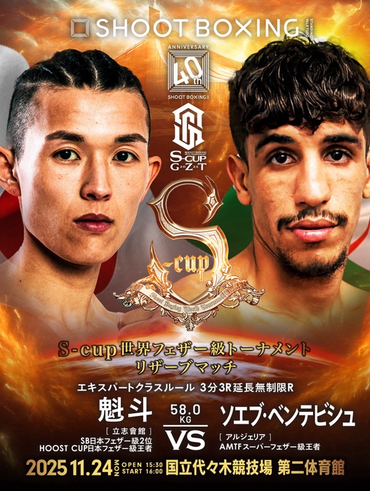 2025年11月24日(月・祝)東京・国立代々木競技場第二体育館『~SHOOTBOXING 40th Anniversary~S-cup×GZT 2025』で行われる「S-cup世界フェザー級トーナメント」の組み合わせが発表された。
