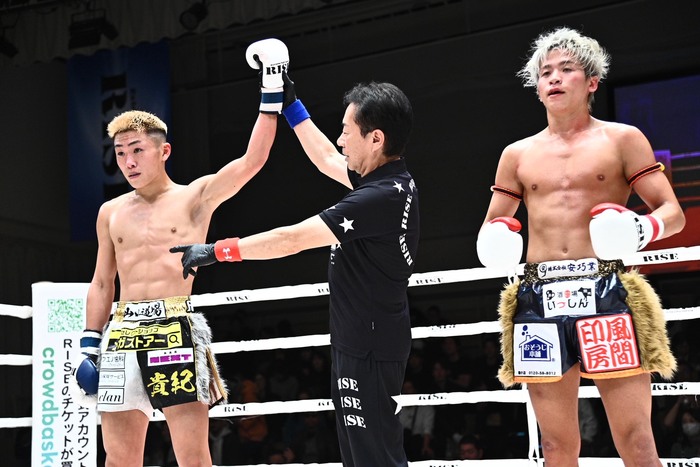 3Rが始まると同時に両者は左右フックを回転させての打ち合い。逆転を狙う武蔵は左フック、バックキックを放つが山田を崩すには至らない。武蔵が左ボディを打つと山田はヒザ。左ボディで攻める松下は飛び後ろ廻し蹴りを放つも空振り、大振りになったところに山田の右を当てられる。武蔵は焦りからから大振りとなり、ますます攻撃が当たらない状態に。