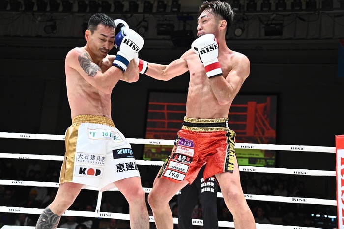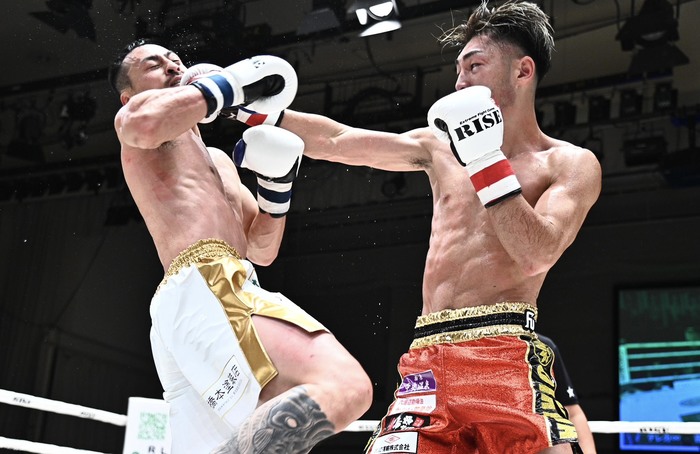 2R、吉岡が順調に攻めていた中、吉岡が左フックを打とうと身体が大きく開いたところに、コーナーに詰まったテレカが放った右フックで吉岡がダウン。吉岡は左ストレートで逆転を狙うが、再びテレカの右の合わせを喰らう。左ハイ、左ミドルを蹴る吉岡。