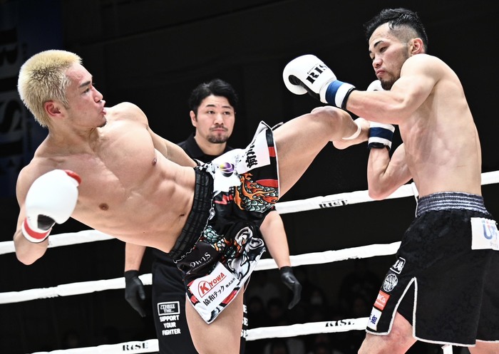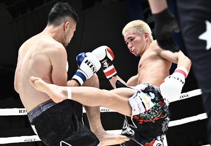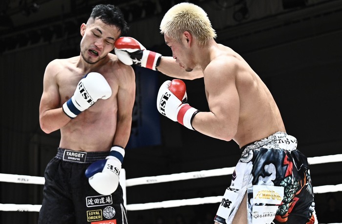 1R、松山は右ローと右インロー、左ボディと右ボディストレート。杉山は前に出て行くが次々と被弾する。左の三日月を蹴る杉本へ松山は右ボディストレート。杉本が左ヒザを突き刺すと下がるようになった松山へ杉本は左三日月、左フック。ガードを下げてにじり寄る杉本に松山は後ろ廻し蹴りをヒットさせる。