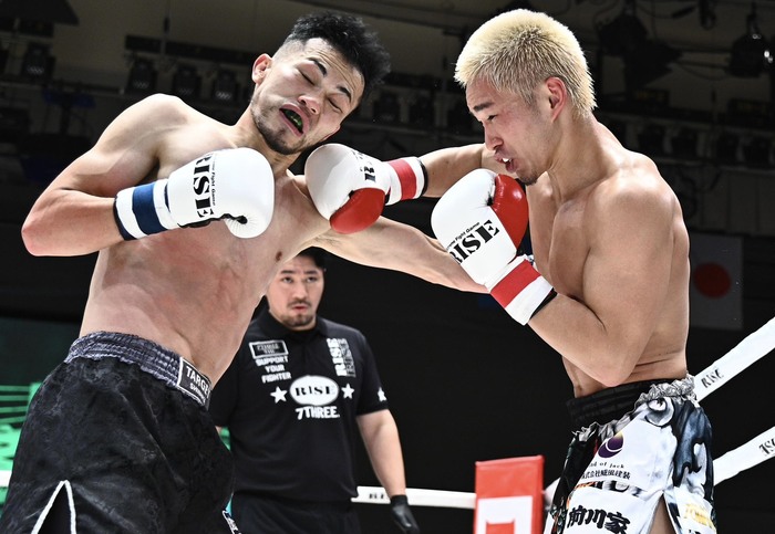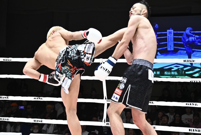 3R、右ローをもらいながらも独特な動きから接近すると左右フック、豪快に右アッパーを突き上げる杉本。松山は右ハイをヒットさせ、右ストレートを連打するが、すぐにすぐ元が前へ出て圧をかけ左右フック。松山の左ボディに下がる杉本に松山は後ろ廻し蹴りをヒットさせる。動きが鈍った杉本はフック&アッパーもパワーが感じられない。松山は左ボディ、右フック、左フックを最後にまとめた。