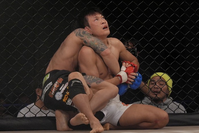 立つ宮澤にバッククリンチから右足をかけて引き込み、シングルバックから再びトップ。亀になる宮澤の左手首をコントロールして右足をかけて肩固め狙い、シングルバックから首を狙うが、宮澤が守りホーン。