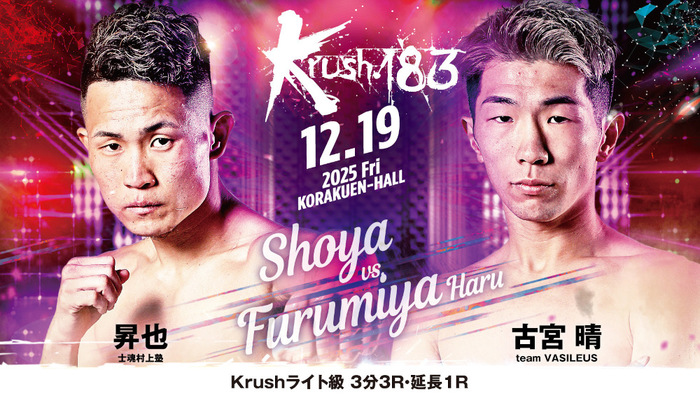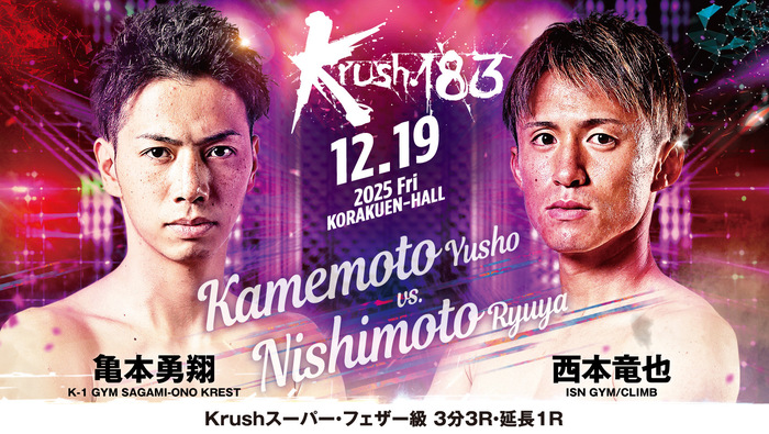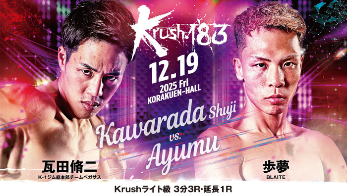 2025年12月19日(金)東京・後楽園ホール『Krush.183』の追加対戦カードが発表された。今年2月にワンデートーナメントが開催されるなどKrush最激戦区となっているライト級で3試合が決定。