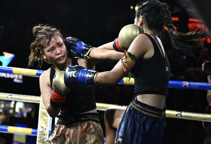 2R、パンチ勝負のユウリに、ゴンナパーは縦ヒジを合わせてカットに成功。「前が見えなくなるほど血が出てきてなかなか自分の距離で戦うこともできなかった」というユウリは距離感が合わず、ゴンナパーのミドルの餌食に。首相撲の攻防でも上背のゴンナパー優勢の印象が強い。