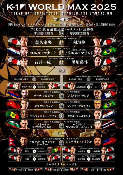 2025年11月15日(土)東京・国立代々木競技場第一体育館『K-1 WORLD MAX 2025~-70kg世界最強決定トーナメント・決勝ラウンド~」の海外ライブ配信が決定した。