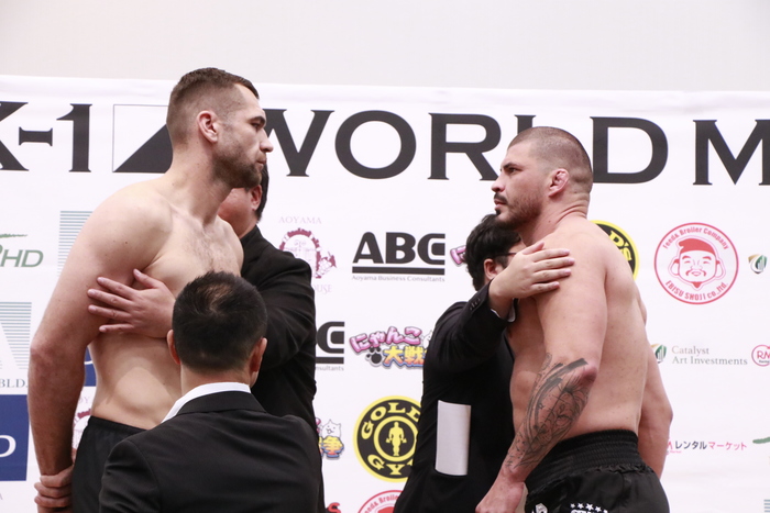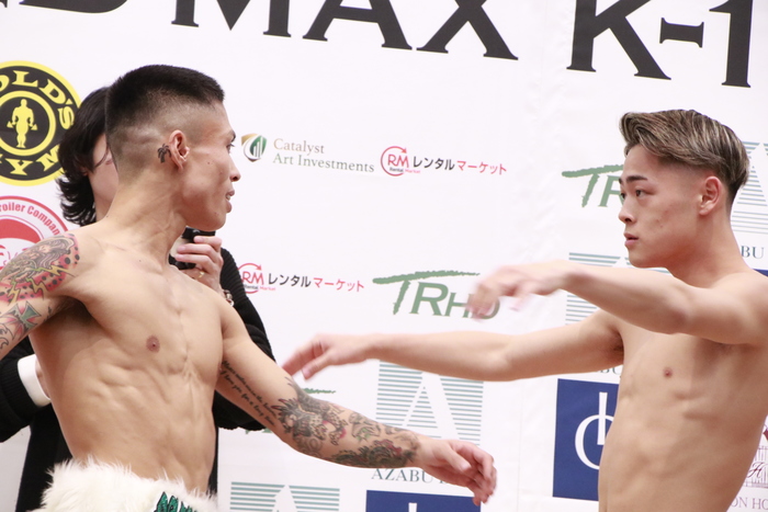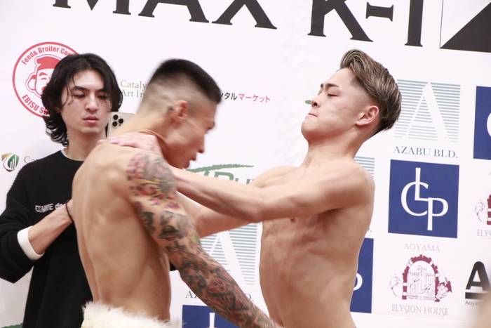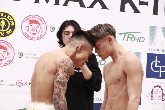 特に第1試合で対戦する永坂吏羅(K-1 GYM SAGAMI-ONO KREST)と松本海翔(TAD)は、永坂が額を押し付け、これに怒った松本が永坂を突き飛ばし、関係者が間に入って制止する一触即発の状態となった。
