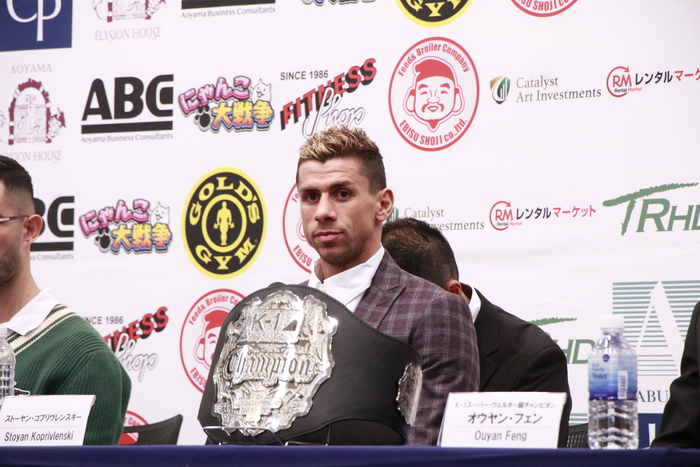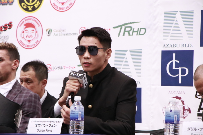 オウヤン「まずこの場にいる私以外の7名は各国のトップファイターだと思っています。とても強い選手が集結しています。そしてその場にいられる自分もとても光栄なことだと思っております。もちろん、各選手とも目指すのは優勝であり、ベルトだと思っています。昨年のことになりますけども、自分が試合直前の練習で怪我をしてしまい、私の代わりにチャンスがストーヤン選手に巡ってきました。結果としてストーヤン選手が去年のMAXのベルトを戴冠したわけなんですけれども、自分の今の思いとしては、そのタイトルとベルトを回収したいという強い思いがあります。ですので、明日の試合ではまず1回戦の相手を必ず倒して、決勝戦まで駒を進めて、相手が誰であれ必ず倒して決着をつけて、MAXのベルトを今年必ず持ち帰りたいと思っています」