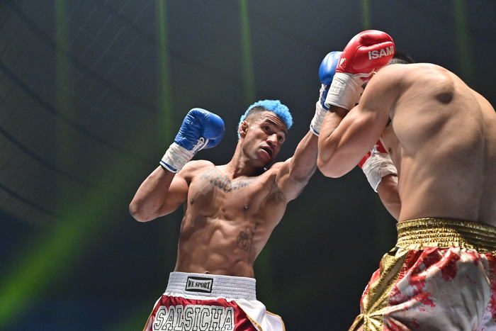3R、サルシチャは左右に構えをスイッチし、前に出てくるフェンへ飛びヒザ蹴り。さらにジャブ。サルシチャのヒザでグラつきながら下がるフェンにサルシチャが左右のラッシュ。ピンチのフェン。それでもパンチで打ち合う。サルシチャはヒザ蹴り入れてからの左ストレート。左右の連打を叩きつけるフェンだが、サルシチャのガードは固い。ヒザを突き刺し、ジャブ、左ボディ、右フックを打つサルシチャ。最後はサルシチャがジャブ、ステップを使ってフェンから離れ、試合終了。