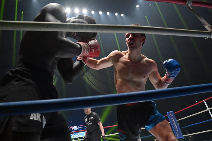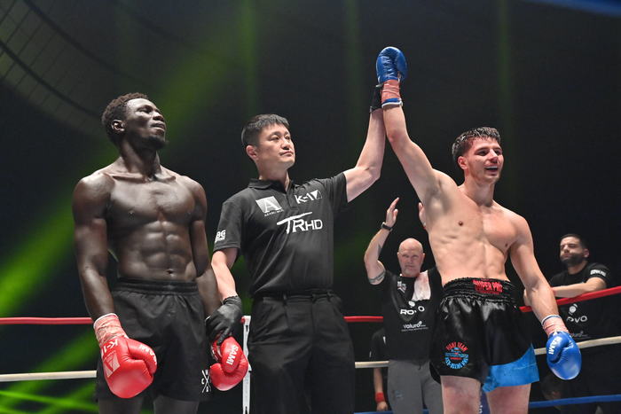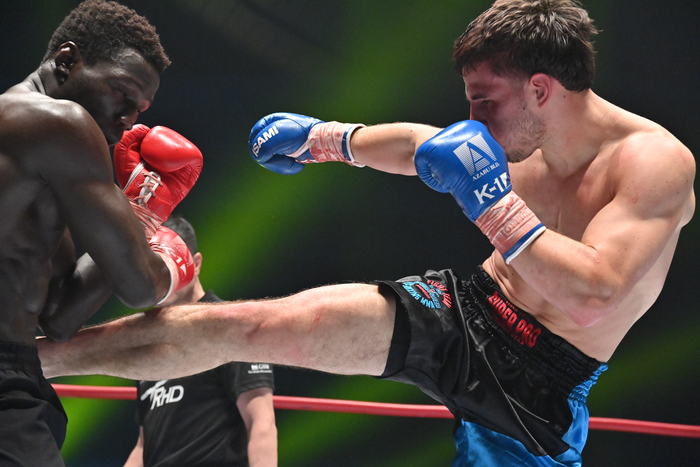 3Rもタフな打ち合いとなる。前に出て攻めるのはフェルドンクだが、左ボディを打てばカマラも左ボディを返す。頭と頭がくっつくような至近距離でボディを打ち合う中、フェルドンクが飛びヒザ蹴り。最後まで前に出て攻め続けたフェルドンクに対し、カマラはやや疲労が感じられた。