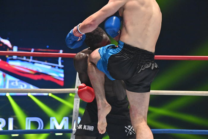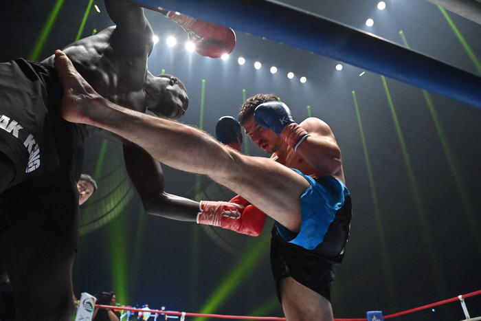 2R、フェルドンクは右ストレートからの左ハイを狙い、ボディへヒザを突き刺す。カマラはフェルドンクの圧に上がり、後退しながら右ストレート。カマラの連打をブロックして左ハイを蹴る。左前蹴りもボディに突き刺すフェルドンク。左右ボディを打つと、カマラも左ボディを返す。フェルドンクが左右フックを叩きつければ、カマラも左フックを叩きつけて左ハイ。