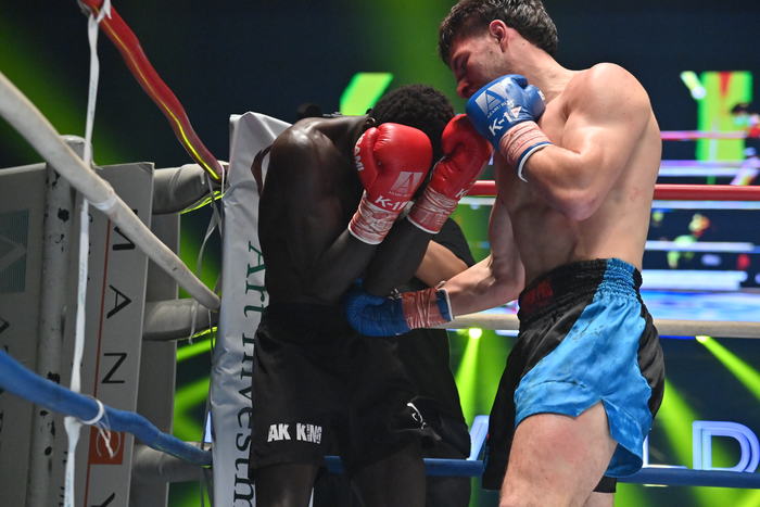 1R、カマラの右フックからの左ハイキックがクリーンヒットし、フェルドンクが大きく下がる。すかさずワンツー、左右フック、右アッパーで畳みかけるアラッサンだが、フェルドンクはガードを固めて耐える。そして右フックで逆襲すると右ボディ、左右フック、右アッパー。カマラもブロックを固めてフェルドンクの猛攻に耐え、右ストレートを返す。互いにチャンスをつかみ、ラッシュをかけたため消耗が激しい。