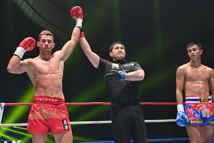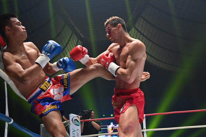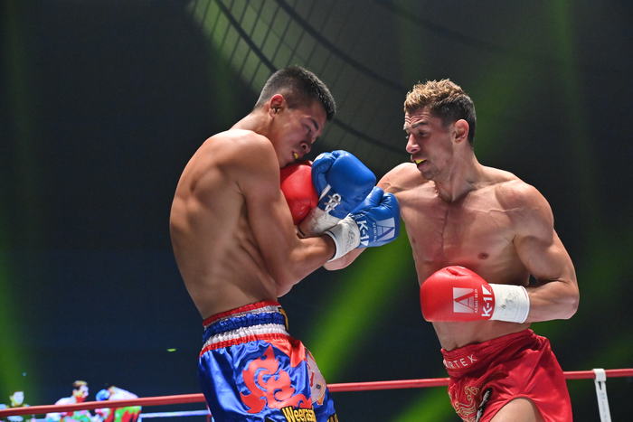 1R、コプリヴレンスキーが右カーフ、左フックからの右オーバーハンドとアグレッシブに攻める。ヘラクレスはロープを背負い前蹴り。コーナーに詰めたコプリヴレンスキーは右ボディ。左ボディから連打をまとめるコプリヴレンスキー。ヘラクレスは左ミドル、右ローを蹴るがコプリヴレンスキーを止められない。パンチにガードを固めたところに左ボディをもらう。