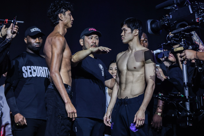 【ONE】王座戦スーパーボンvs.野杁正明、若松佑弥vs.パシオ、名高vs.ヌンスリン。武尊vs.ピューリックもパス、青木が手塚をこかす。安保は水分補給で最終2.9kgオーバーのキャッチ戦に、ロッタンvs.ノンオーは「延期」=ONE173全選手計量